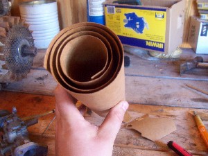 Then I simply traced around the outside of the flange and cut the template to shape. Once I was happy with that, I traced it on to the gasket material.
