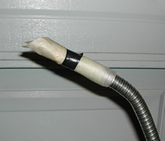 Left: #4 coffee filter affixed to nozzle. Right: Filtered gasoline without sediment.