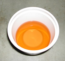 On the left is fresh gasoline, and on the right is the aged gasoline.