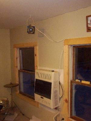 I was having a problem with the heat from the propane heater drifting across the ceiling and into the main part of the house where it’s not needed instead of drifting across the living room. Ceiling fans are one solution, but they don't normally move air from one room to another, and I needed to move air from one room to other rooms, not just mix the air in one room.