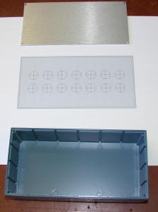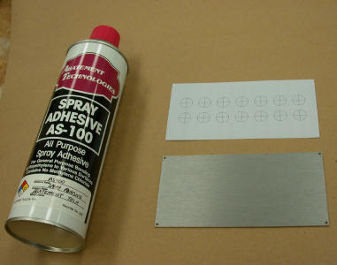 Cut the layout sheet to size. With a can of spray adhesive, spray the back of the layout sheet, then apply it to the panel of the project box. If you do this with the adhesive still wet, you can move it around some.