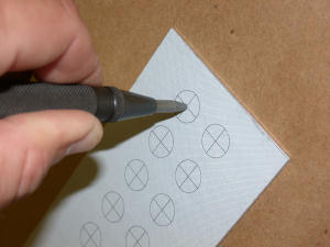 Using an automatic center punch, I mark the centers of all the holes.