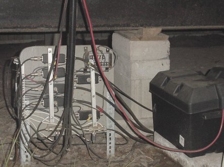 The wire run from the panels was put in Radio Shack spiral wrap, for firmness and protection on the run from the panels to the batteries.