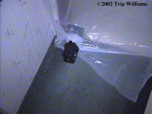 Let your fan(s) run for about 15 minutes and then the plastic should be SLIGHTLY pushed out.. if it's pushed out TIGHT you have WAY TOO MUCH PRESSURE... Go around the room with smoke per my article (householdairleaks.htm) as long as the smoke is all going OUT you are fine, doesn't matter how many air holes you find as long as that smoke is going OUT of them. There is no need to "Seal a room with plastic", you simply want a little pressure in the room to keep air moving OUT of it.. Viruses and such float with the wind for short distances, but they can not float "Up wind". As long as there is air moving out of the holes, the little buggies are blown away instead of being sucked in.