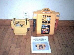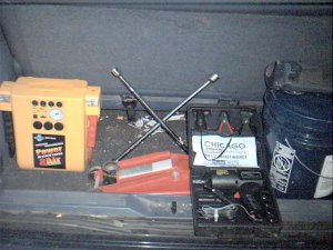We all by now, keep a BOB in our BOV. Presumably our BOV is well maintained, and we know how to do emergency surgery on it if we need to. But what about something simple? Like a flat tire, or a dead battery? Does your spare have air? Do you even have a proper fitting spare tire, in good usable condition? Do you have the proper tools to change a tire quickly and easily? I don’t mean the manufacturer's idea of a lug wrench, and a jack. I mean do you have a real, lug wrench and jack? You left your parking lights on, and didn’t discover it, until you got out of the store or off work, and your battery was dead. Do you have jumper cables? Even if you do, is there someone around who will actually stop and give your vehicle a jump? Without jumping you that is… 8{)= Since I work about 140 miles away from home, I was concerned about what my wife would do if something like that happened to her. So I started to put together a small kit for her Mini-van. First part was a means to jump start her vehicle, without having to rely on someone else, hence the portable jump box, I just bought her.