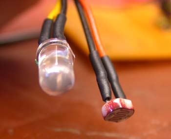 ![]() I put the LED & Photoresistor on leads so I could position them where needed. They could have also been mounted in a project box. |