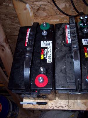My old battery bank setup was linked together by 8 gauge wire and ring connectors and one battery was linked to another down the line, so on and so forth.