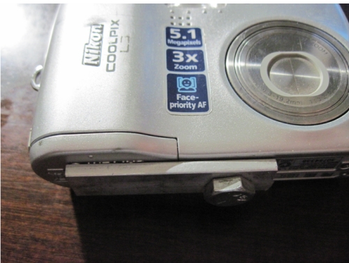 I was offered a Nikon Point and Click camera. A 5.1 camera with an optical zoom. At the time, it was a decent camera. I was offered the camera for free. The catch was that the battery door latch on the bottom was broken. The owner has tried using tape to keep it shut, but it became an inconvenience when changing the batteries. After growing tired of dealing with it, he decided to offer it free to anyone who wanted it. Being the crafty person I am, I took him up on the offer.