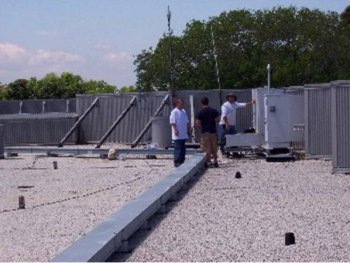 When we install the antennas we have to make sure that they are level. Then an engineer does his super complicated algebraic calculations and tells us exactly what direction they have to be facing and how many degrees of down tilt is needed. For high mounted antennas, they are tilted down slightly so that the signals reach the ground. The round one pictured above can be down tilted electrically from the ground. The two big ones shown need to be done on the tower.
