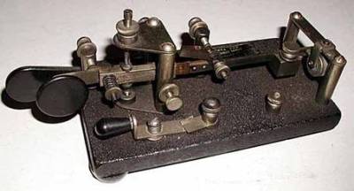 Here's a "bug," also called a "semi-automatic key." It is the Vibroplex "Lightning Bug," designed in 1906 or thereabouts and adopted also by the military as the J-39 (this one was made under license by the Lionel Electric Train Company - yes, that Lionel):