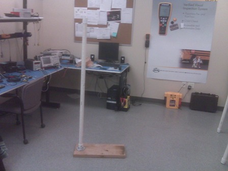 At work a while back, I came across a need to put a 2.4ghz Yagi about 15 ft in the air for cheap. Normally this wouldn't be much of a design problem, except that it needed to be in the middle of a parking lot with no way to secure the mast or guy wires. After a while wandering around Home Depot and surfing the web, I came up with a mast that can be broken down fairly compact, could support a few lbs (I really wouldn't push that... The antenna I was using weighed about 1.5 lbs, and though it never caused me any trouble, it sure did sway a lot in the wind), and required no guy wires or digging.