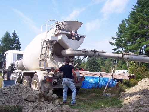I can't lay claim to this one, but the guy who can is quite smart. This is a cement bucket that attaches to his backhoe, it holds 1/3 yard of cement and eliminates pumping and shoveling. We used it to pour a footing and I'm impressed. It used to be a salt/sand spreader and was slightly modified.