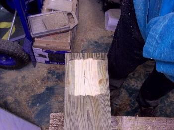 Fairplay has never used a router before and got his first shot at it today. For anybody who doesn't know Fairplay, he has one arm. So...one arm, never having used a router and gets his lesson on a piece of 6x6 pressure treated. He didn't do half bad. I'm impressed.