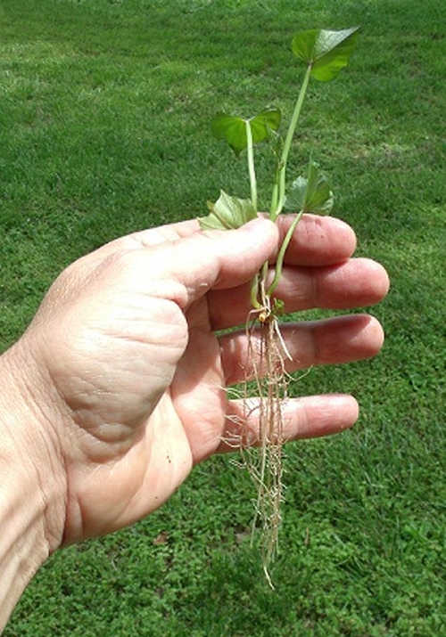 We had one of the worst droughts on record for the 2012 growing season, but the sweet potatoes did phenomenally well. The "knot" in image 06 grew out of one small start, and there can be as many as 20 starts per potato! We got all the sweet potato plants we needed from just a single potato!