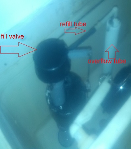 Connect the refill tube from the fill valve to the overflow tube, you may have to cut the new refill tube to length no problem household scissors should do the job nicely. A little elbow came with the kits I buy, the elbow directs the water from the refill tube down the overflow tube. I've seen repairs were people have discarded the elbow and not shortened the refill tube, just stuffing the refill tube down the overflow tube. I don't recommend doing this because the tube can become kinked or worse the water pressure can force the refill tube out of the over flow tube when this happens water spits around the inside of the tank with water being sprayed around the water finds it's way out from under the lid causing a leak that only happens when the tank is filling with water. There is a clip that holds the elbow of the refill tube to the side of the overflow tube use it. The refill tube refills the bowl thru the overflow tube. The water for the tank actually comes out of the bottom of the fill valve. You can see this when you turn on the wall valve. Turn on the wall valve to fill the tank and check for leaks while the tank fills and after it fills.