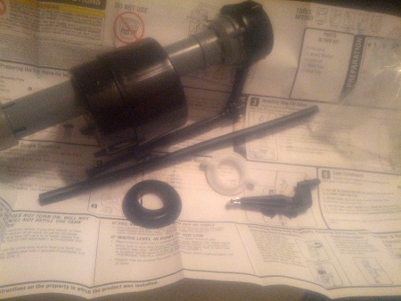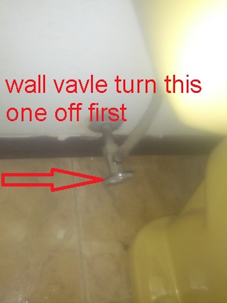 After reading the instructions you can now turn off the water at the valve coming out of the wall below the toilet tank. Pull the lid off the toilet tank and set it some place where it wont be knocked over and broken. Flush the toilet, hold the handle down to empty the tank as much as possible. There will still be as much as an inch of water still in the tank. This doesn't seem like a lot until you have to clean up all that water off the floor. I use a sponge or rag to soak up this water and ring the water out into the bucket or into the toilet bowl. Be sure not to leave any rags or sponges in the tank, you don't want the rags going past the flapper valve.