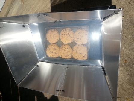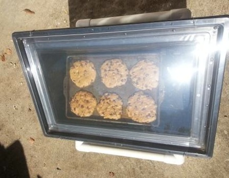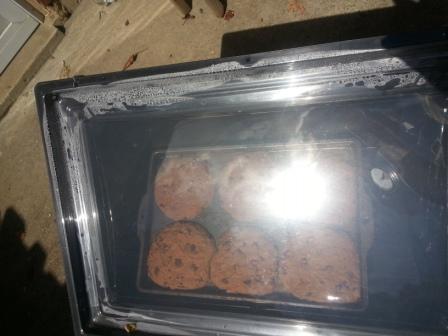 These are Hubby's favorite chocolate chip cookies and yes, he likes his cookies man-sized. They are baking in a sun oven.
