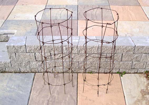 My contribution to the world of tomatoes is made from the wire mesh that is used to reinforce concrete slabs. It is a common item and is available from construction supply depots around the country. What you ask for is 6 X 6 steel mesh. That simply means that the mesh is made up of six inch squares and is generally #10 steel wire. It is available in sheets as well as rolls.