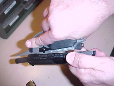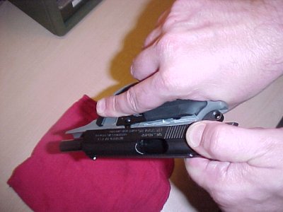 Once finished simply place the front of the barrel back into the slide, again depress the slide release and pull back on the slide.