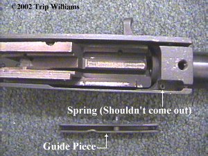 Here's were we get to "Exception #1" that I talked about above.. make SURE the back of the Guide Piece is back UNDER the bolt and that the front is sitting OVER the tiny spring, with the pin holes lined back up.
