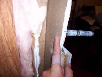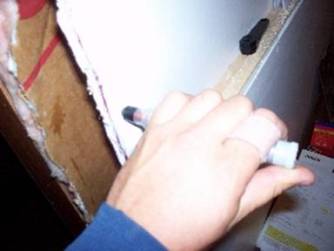 Notice in the left picture there’s a wet spot on the brown paper behind the sheetrock. That’s .15 mg of epinephrine from the Epi-Pen Jr. injector I put through the sheetrock.