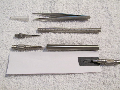 The pic below show the tips removed from the handle ready to be reversed and installed back into the handle. The nylon loop pick-(I colored a piece of paper black to highlight the loop).