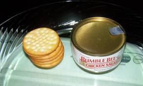 Contents of package; 6 crackers and 1 can of chicken salad.