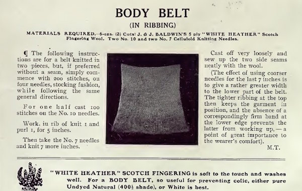 Whatever. This is what many of our ancestors thought the belly-band did; and right-or-wrong, this is why they wore the things. I'll discuss my own experience with a modern version presently.