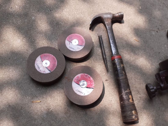 There is a learning curve to drill presses. The first wheel - the one where I botched the pour - was used for practice and, true to form, I botched the hole. The other two went much better.
