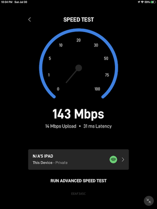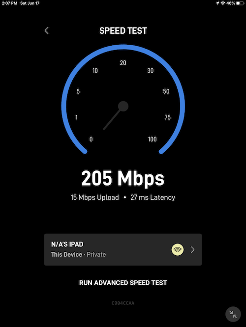Just like our DSL service (which is included in our telephone service essentially free) Internet performance is variable. The Starlink app running on an iPad, iPhone or Android will test the satellite connection; it is not uncommon for the net to be slow but the satellite to show good speed. The other night pages were loading painfully slow but the satellite connection tested out at over 100 Mbps download, so the problem was out in the broader Internet.