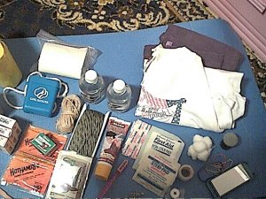 We went in the house and the girls wanted to continue watching the t.v. (they had watched some at school)…I was skeptical but said fine. After about a half hour they had enough and shut it off themselves. The unspoken words filled the air. After each of us having our ‘own time’ (the girls in their rooms doing what they wanted and me doing things around the house) I called the girls into the livingroom and said "I would like us to do something today that I have been wanting us to do for a long time" and they both responded "the 72 hour kits!" I said yes and then asked them to share their thoughts on why I would want us to have them. They talked about the attack but they also talked about natural disasters and perhaps needing to leave the house. We also talked about why it was a good idea for each of us to have our own kit and not have one person have everything for everyone. I surely wouldn’t want to get separated from my children in a crisis situation, however, I would feel better knowing that they had food, water, emergency blanket etc. to survive with and the girls understood that concept too. After talking things over, we began to put our kits together! The idea of the kit is to have enough emergency applies in it to last for a 72 hour period of time, so it would include enough water and food for three days. Some things to remember are that we can really survive on a lot less than most of us normally eat and store food in the kits that your child will eat…if the kit is needed that will not be the time to have food in it that your child will not like…’comfort’ is an important part of your kit too! As you notice, my daughter’s pack includes a notebook and some Nancy Drew books!