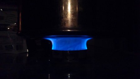 Using a quarter inch (about 30mL) of SLX denatured alcohol, I test ran this stove using a heavy bottomed kettle and 2 cups of cold tap water. In the field, a smaller and lighter vessel and a windscreen would be advisable. From room temperature to a full, rolling boil with the whistle screaming was just under five minutes. There was still fuel remaining. Take care to balance the pot evenly. Some test run pictures: