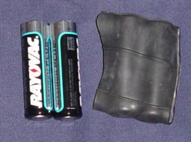 I am using 26" mountain bike tubes. These are large enough for AA's, and probably others like 9 volts, though I have not tested this. Smaller tubes would work well for AAA's too.