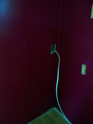 This will all be hidden. It leads in to the wall and up to the outlet below.