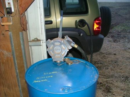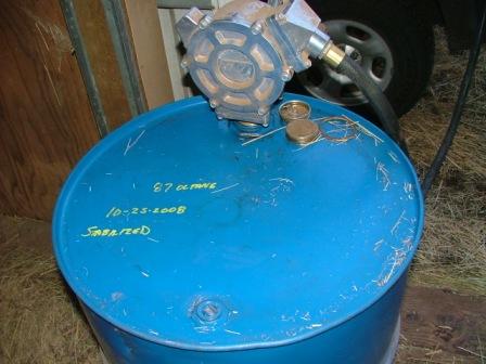 It takes all of 10 minutes to fill up and relock the shed. This barrel was emptied on Saturday and the barrel that replaced it was filled, treated and put in place on Sunday-today. Another barrel of used gas was brought up for consumption – and when I cycle through the six barrels we keep this way I’ll let them set for at least a year or until gas prices drop dramatically or the fuse lights. Using the technique allows us to have 300 gallons of usable gasoline at any given time and the oldest stock can never be more than about slightly more than a year. In 2008 I screwed up and forgot a barrel that was hiding in the corner under a stairwell – so it was not used until it had aged for almost 21 months. We burnt it in our vehicles by using the never below ¼ tank before filling rule.