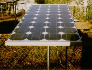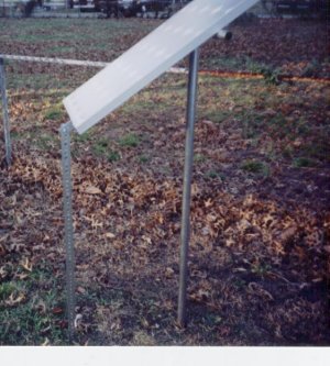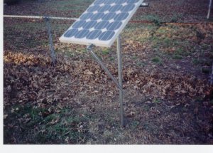 Now if we want to just “up and leave” we can just disconnect our power lines to the panel and lift the panel from its base, load up and go. We also keep another base pipe cut to size in the truck so that we will have someplace to put the panel should we leave the house.