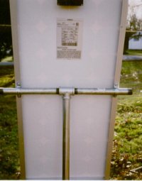 We ended up deciding on using metal pipe(threaded) as our stand. We picked up a 10' section of 1 1/4 OD pipe. This is used for the Main part of the stand, the base. we picked up a 36" 1" OD pipe for the piece that would mount to the panel and slide down in the larger pipe. Not that you would need it but this allows you to swing your panel 360 degrees around a center axis. We used a 1" tee and 2 12" pipes to screw into the tee, these are your horizontal supports. Now all that’s left to do is get something to fasten the supports to the panel. We ended up with 1" pipe hanger brackets. (2 hole)This allows you to be able to "tilt" your panel approx 340 degrees.