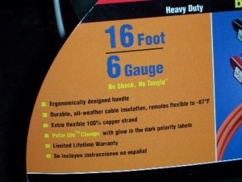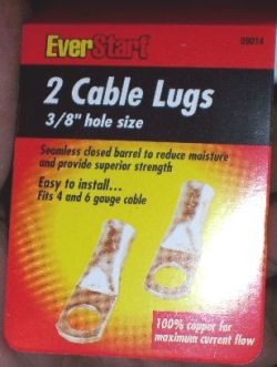 After I bought the genny, I realized I still had some "preps money" left, so I read some more articles and decided that the next thing I needed were some deep cell batteries and an inverter. I drove by Wally World after work today and got (2) 27DC-6 deep cell marine batteries (recommended in more articles than I should link to here) and I also got a 750 watt continuous, 1500 watt peak inverter. While there I figured out what I needed to hook the batteries together (a recommendation about using jumper cables and cutting them down to hook your batteries together by War in a recent post helped), but I needed some way to connect those wires to the batteries, I chose to use lugs that would fit onto the threaded posts on the batteries (tightened with wing nuts) because they would be easier to disconnect if I had to for some reason. Here's what all that stuff looks like: