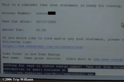 Someone on a kiddie survival site commented that we were trying to maintain "suburban lifestyles" when TSHTF "with all our alternate power". First, I live WAY out in the country, not in Suburbia. The frequent power blinks and outages this far out is what got me started in Alt power in the first place. Second, the Whole family can watch a DVD, or listen to an audio book, for about the same power as one person sitting in a room reading (it costs me nothing to power the Hi-def widescreen after all, the power is "free" now that the system paid for itself in power bill savings... See my power bill [below]). I don't know why people think you HAVE to suffer if an ice storm hits, or a hurricane has come through and knocked out the commercial grid... maybe you aren't considered to be "Surviving" unless you are wet and bored and miserable? That's just ridiculous, and these kiddies need to grow up and stop reading "end of the world survival fiction".