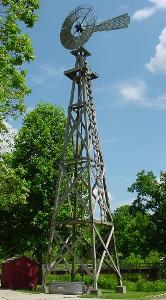 Around 1900 the windmill industry was big business in the northern Midwest. This was before electricity made it to the farms. Muscles (human and animal) provided most power needs. Cars and tractors were just starting to replace horses. As always, having a reliable supply of water was very important. Many water pumping windmills were built to satisfy this need nearly effortlessly. Windmills were also used at this time by the railroad. The mills pumped water into holding tanks so it was ready for use when a steam engine came by. Windmills came in a variety of sizes to meet various applications. The diameter of the rotors varied from 4 ft to 22 ft.