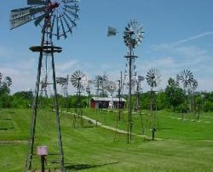 Just east of Kendallville, Indiana is the Mid-America Windmill Museum. They preserve and display many mills that were made locally. Although only a few do actual work, the scene is quite kinetic as most are free to turn in the wind.