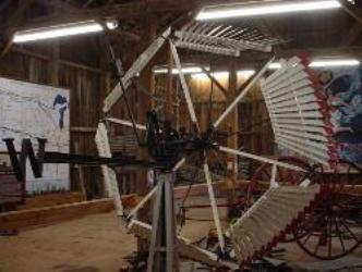 The museum has an unusual windmill called the Power Aermotor, made by the Aermotor Company. In this unit, the output shaft rotates rather than moves vertically. From a plaque at the museum:
