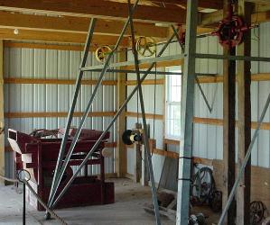 This museum display is set up so that the windmill drives a line shaft in the shed. (See top of picture on right.) Looks like a nice way to get some work done on a chilly and windy winter day!