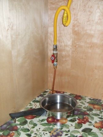 For some reason, Wifee wanted to store pots and pans in the cabinet under the cook top J fortunately, protecting the gas line is simple.