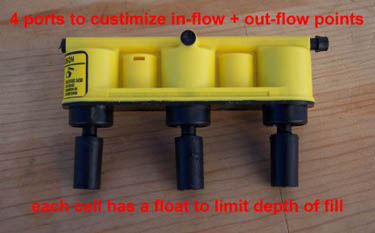 One of my initial questions when I first saw these kits, was how it didn’t over-fill the cells. As the ad claims, “Provides electrolyte level accuracy to 1/8", HOW?? Well, as seen it the picture below, there is a float valve built into the fill tube for each cell. As the fluid level rises to the right level, the float rises and then closes off the opening. Pretty cool!
