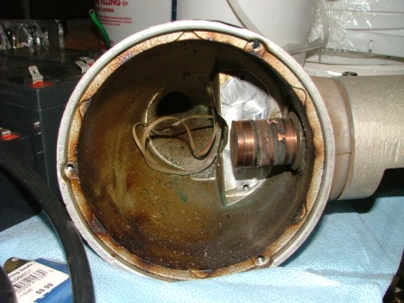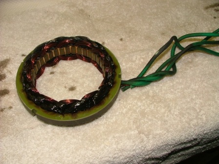 When the stator "cooked off" note the charred effect...Considering that the AR series of turbines are a complete unit with voltage regulator and all electronics housed in an Aluminum casting sealed with o-rings it is a technological marvel in its own right. These little machines are great - we run a freezer tied to a large battery bank on one of these units - so nearly in nine months after the installation the temperature alarm in the freezer has not sounded off and dinner tonight came from that freezer.