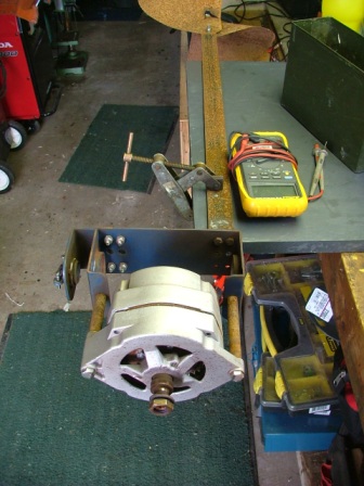 A few weeks ago the LED on the base of one of our other units decided it was not going to light up. The AR series utilizes a POST similar to a PC when a battery is connected to the output. It blinks twice if the system is "A" okay and does several other things while running like letting you know when the battery voltage has reached the point of regulation. At the rear of the Aluminum case there is an Pot for adjusting the point of regulation which allows you to set up the unit on the bench before climbing the pole. Today I pulled the unit down and went through the diagnostics in the manual and the end result was that the internal regulator was bad. After a few phone calls to technical support and another bench test they came to the same conclusion as I did and provided an RMA number to ship the unit back to the factory. The out of box warranty is 3 years so life is good. There was slight admission that there have been a few units to leave the factory with minor issues. We also own an Eagle 1000 watt turbine that has been in place for quite some time and the wife has complained that she can see the hub wobble... so while up there today we decided to pull it down for inspection. The Eagle series of wind generators are based on large Tractor trailer sized alternator that are converted with permanent magnets so that they do not need an external voltage applied to generate power. These units are very robust at the core but the external packaging and gear added to turn it into a wind turbine is less than world class... unlike the Air-X units.