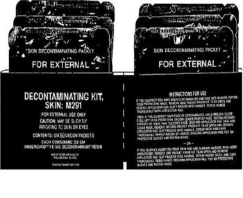 If you ever see the old blue envelopes being sold as “decon kits,” do not buy them. The envelopes only contain rubbing alcohol and are about as much use as a football bat. The “real” ones are in an olive drab envelope and, being poisonous—though presumably not as poisonous as the chemical agent you’re removing—shouldn’t be used anyway. There is a safer alternative.