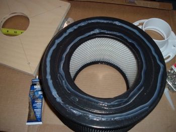 I put two ¼" beads of 100% silicone caulk on one end of the HEPA filter and then pressed it firmly onto the end plate with the threaded rods sticking out of it. I used silicon here instead of Goop because I wanted to be able to change the filter. Silicone makes a good tight seal but will break loose with a little twisting and prying - if you use Goop it isn’t going to come apart.