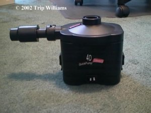 Some enterprising individual came up with an electric air-pump just for these air-mattresses... They're called the "QuickPump" and made by Coleman, you can get em at WallyWorld for about 20-25 bux. They'll blow up an air mattress in no time flat! (No pun intended)